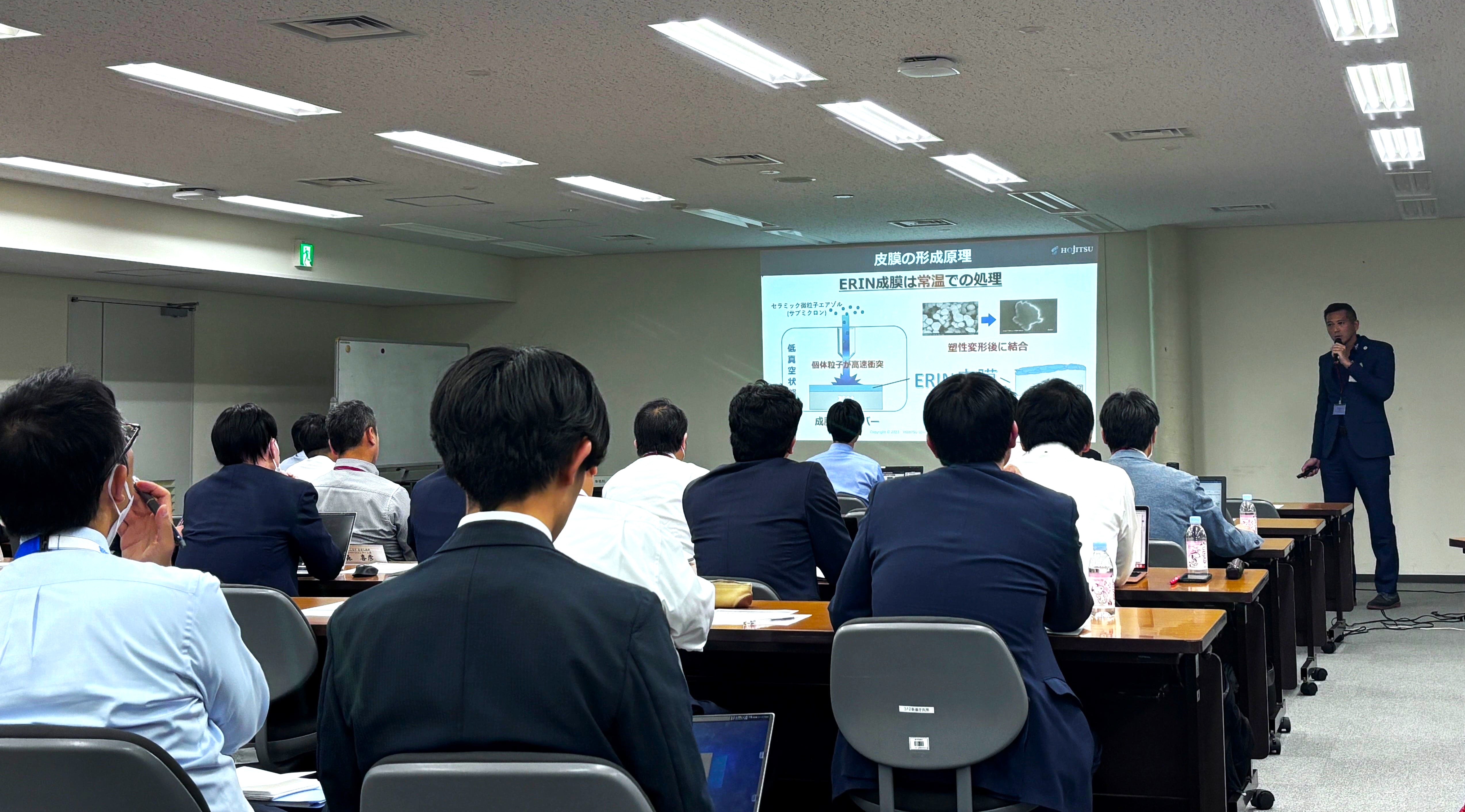 「完全クロムフリー表面処理ERIN(エリン)の開発と環境問題への取り組み」というテーマで、専務取締役の今泉が登壇しました。
