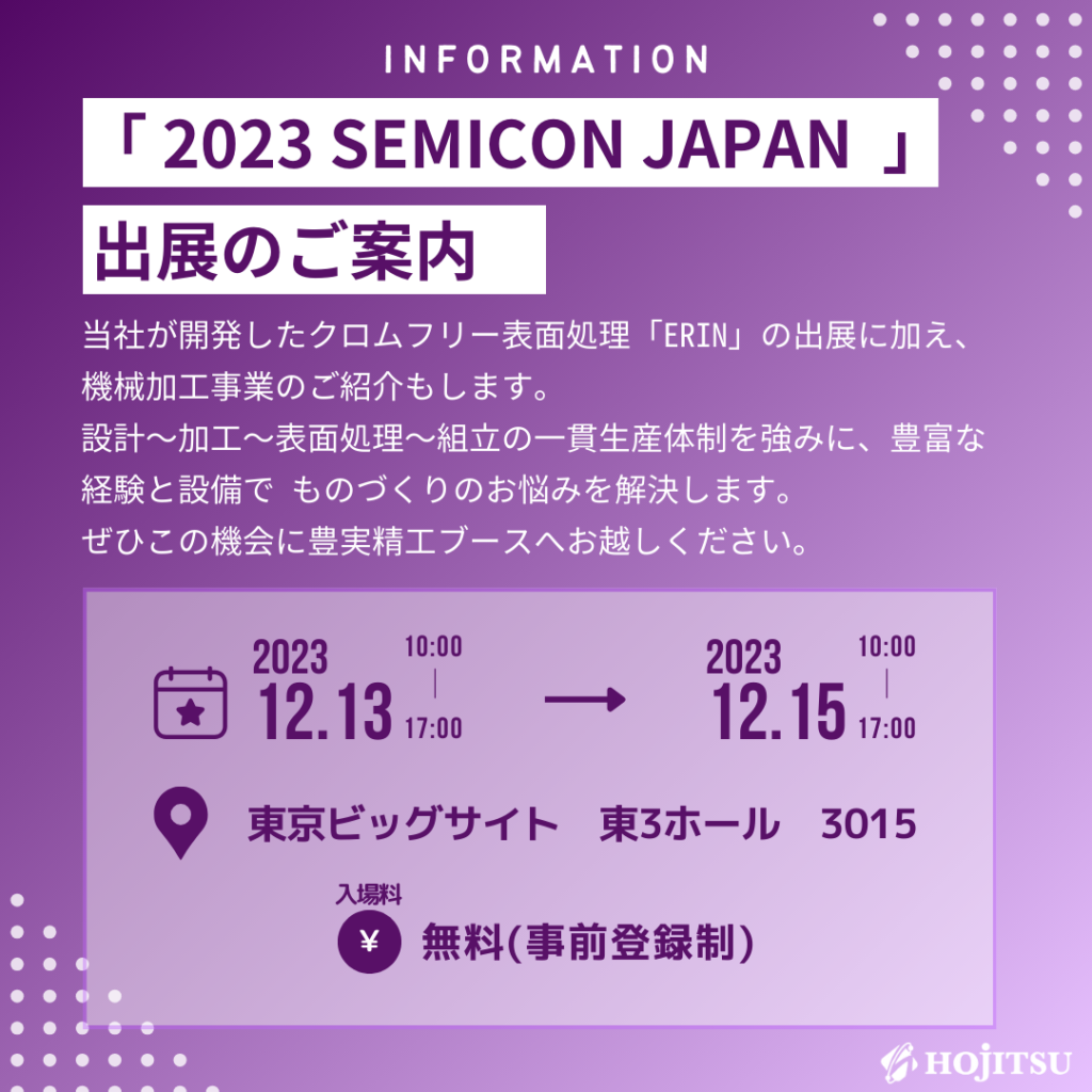 2023年12月13日(水)~15日(金)の3日間、東京ビッグサイトにて開催される「 SEMICON JAPAN 」に出展いたします。