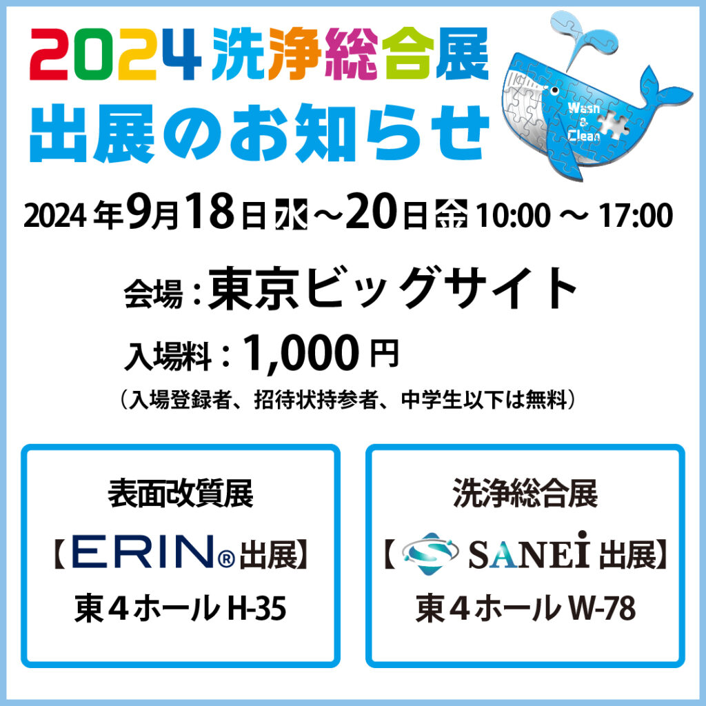 2024年9月18日(水)~20日(金)の3日間、東京ビッグサイトにて開催される「 洗浄総合展 」に出展します。